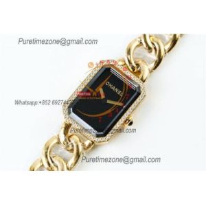 Premiere H3256 Swiss Quartz Womens Watch Best Edition BVF YG Diamonds Bezel Black Dial SS Bracelet Ladies