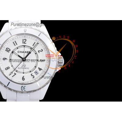 J12 H7189 38mm A12.1 Automatic Unisex Watch Best Edition TWF Diamond Bezel White Ceramic Dial on Bracelet CHS Womens