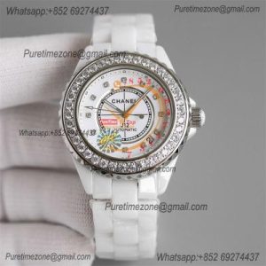 J12 H5705 38mm A12.1 Automatic Unisex Watch Best Edition EAST White Ceramic Diamond Dial on Bracelet CHS Womens