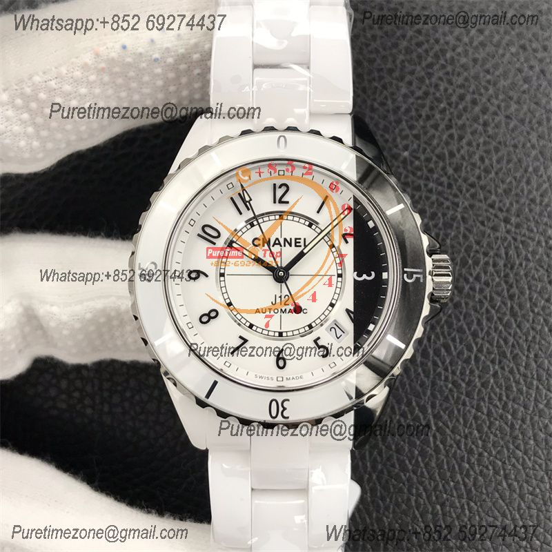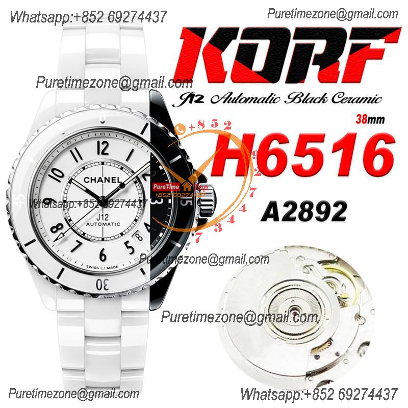 J12 H6516 38mm A12.1 Automatic Unisex Watch Best Edition KORF Black White Ceramic Dial on Bracelet CHS Womens