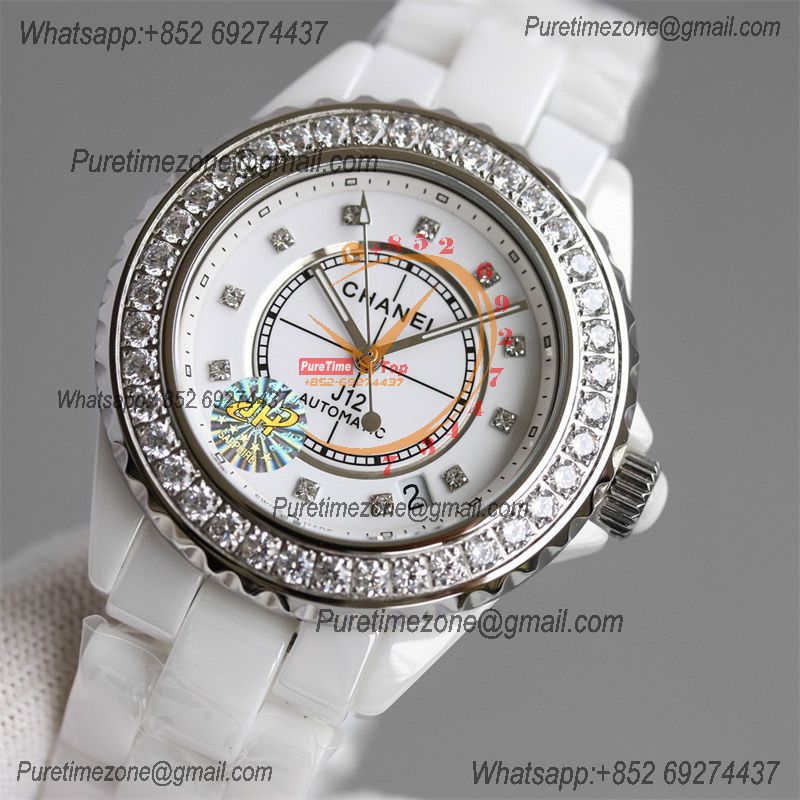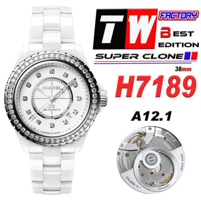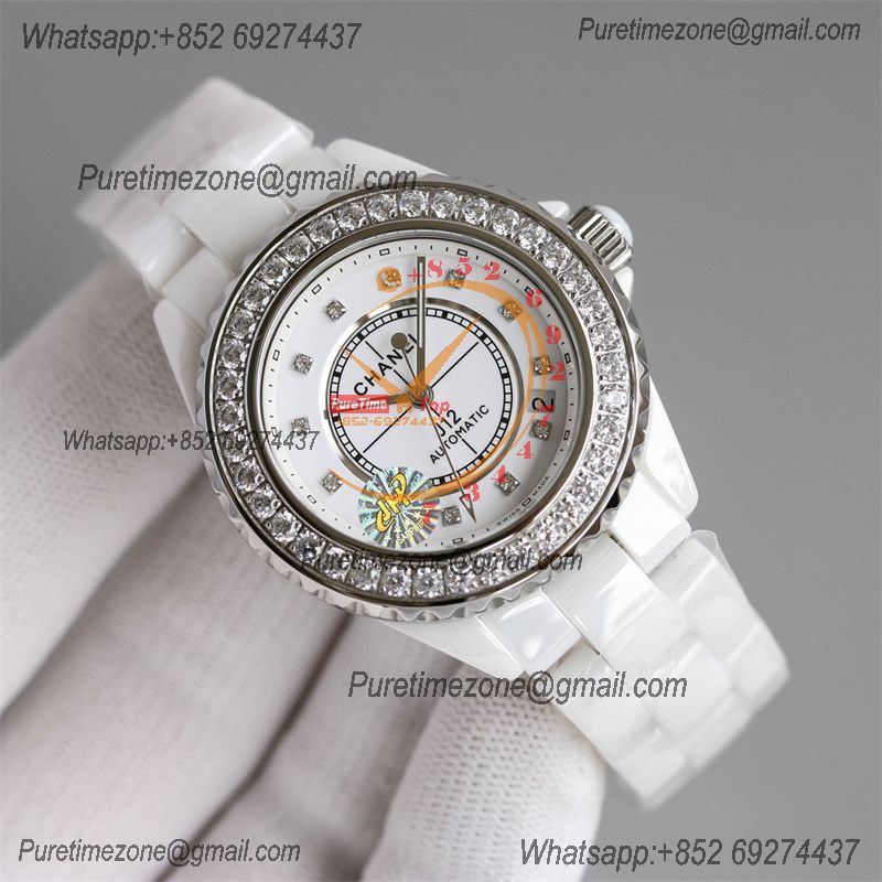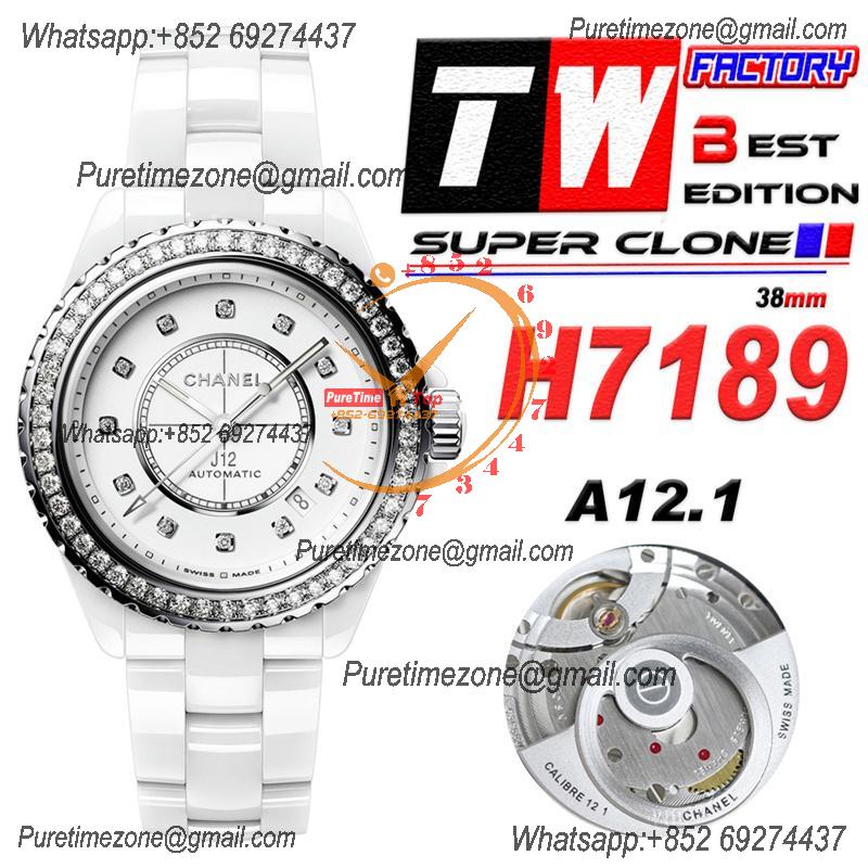 J12 H7189 38mm A12.1 Automatic Unisex Watch Best Edition TWF Diamond Bezel White Ceramic Dial on Bracelet CHS Womens