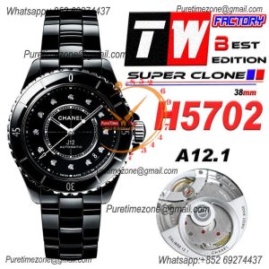 J12 H5702 38mm A12.1 Automatic Unisex Watch Best Edition TWF Black Ceramic Dial on Bracelet CHS Womens $660.00 $550.00