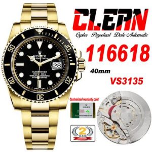 Submariner 116618 VR31355 Automatic Mens Watch Best Edition Clean YG Ceramic Bezel Black Dial 904L SS Bracelet