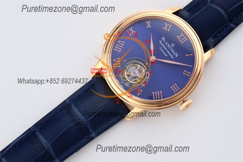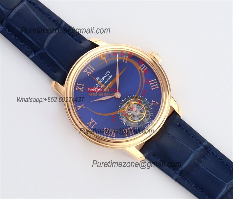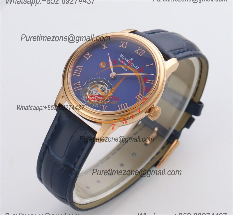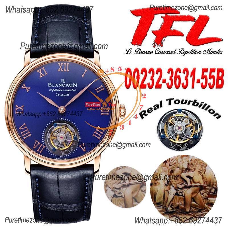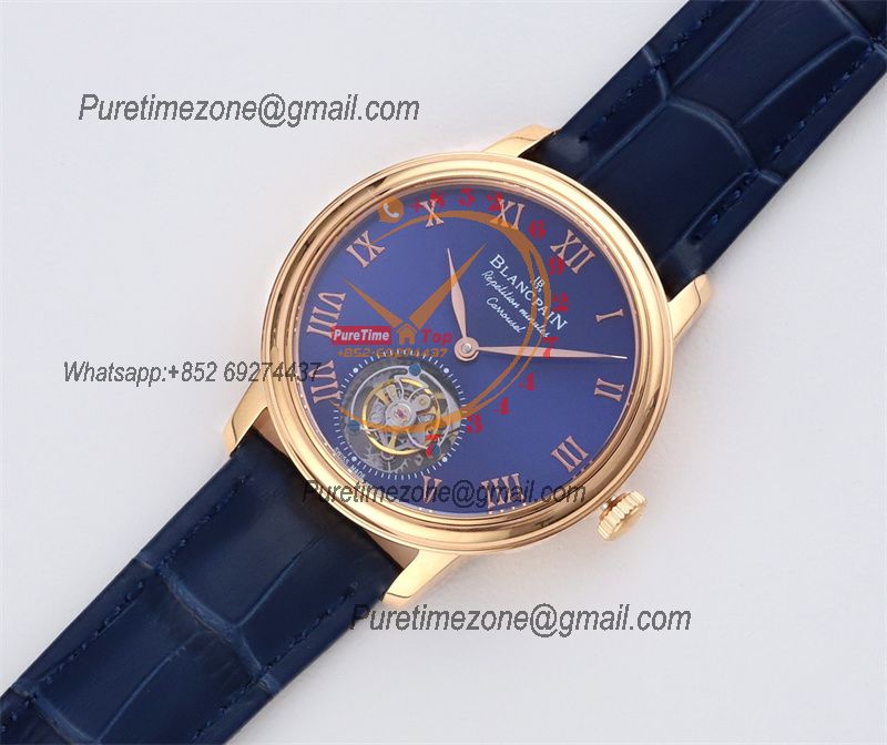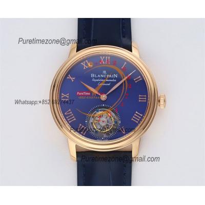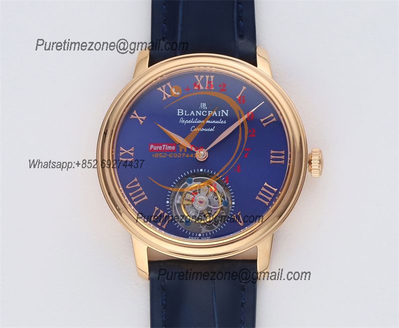 Home Blancpain Le Brassus Carrousel Repetition Minutes Flyingman Tourbillon Automatic Mens Watch Best Edition TLF 44 RG Blue Dial CHS