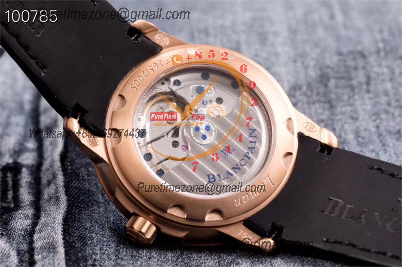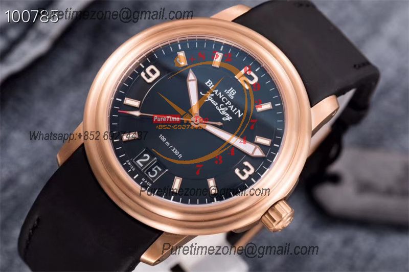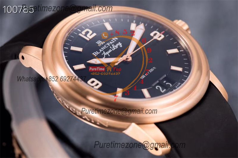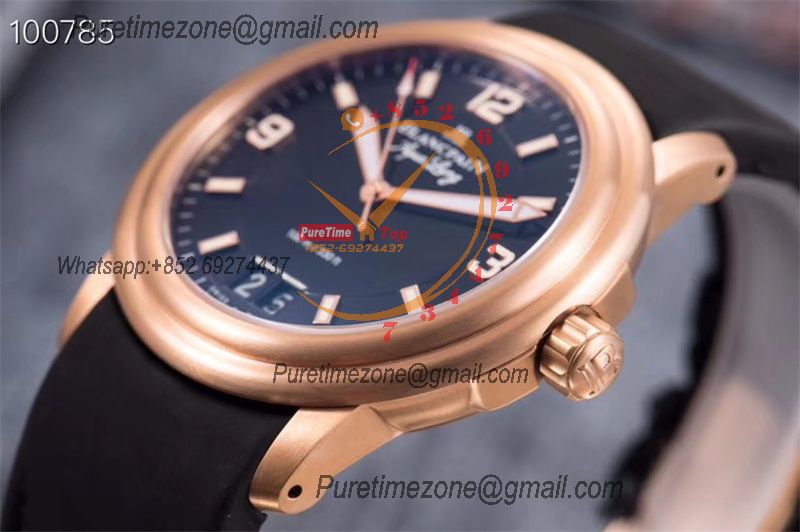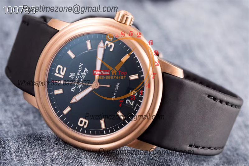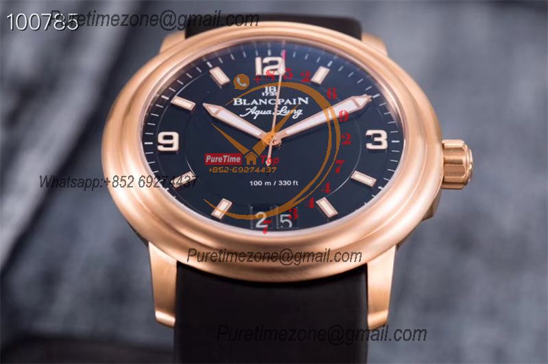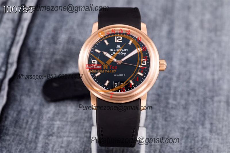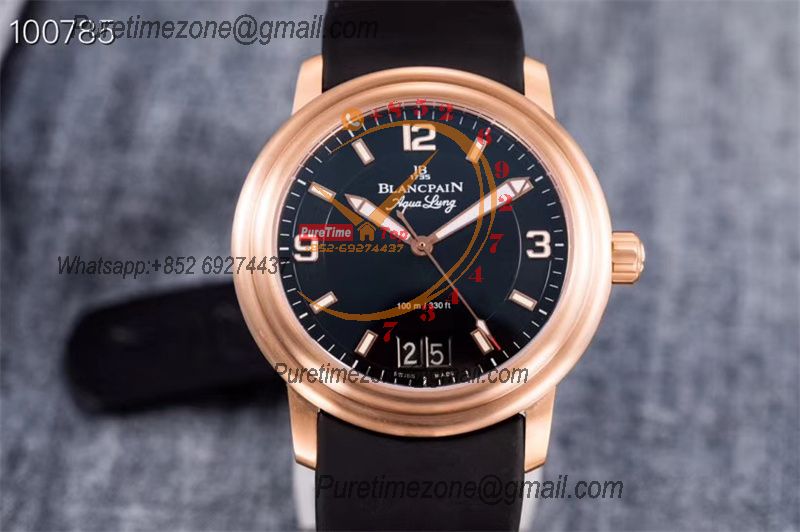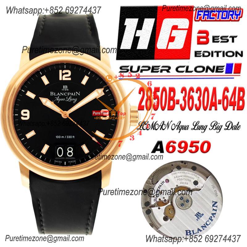 Home Blancpain LEMAN Aqua Lung Big Date 2850B A6950 Automatic Mens Watch Best Edition HGF 38mm RG Black Dial Rubber Strap CHS