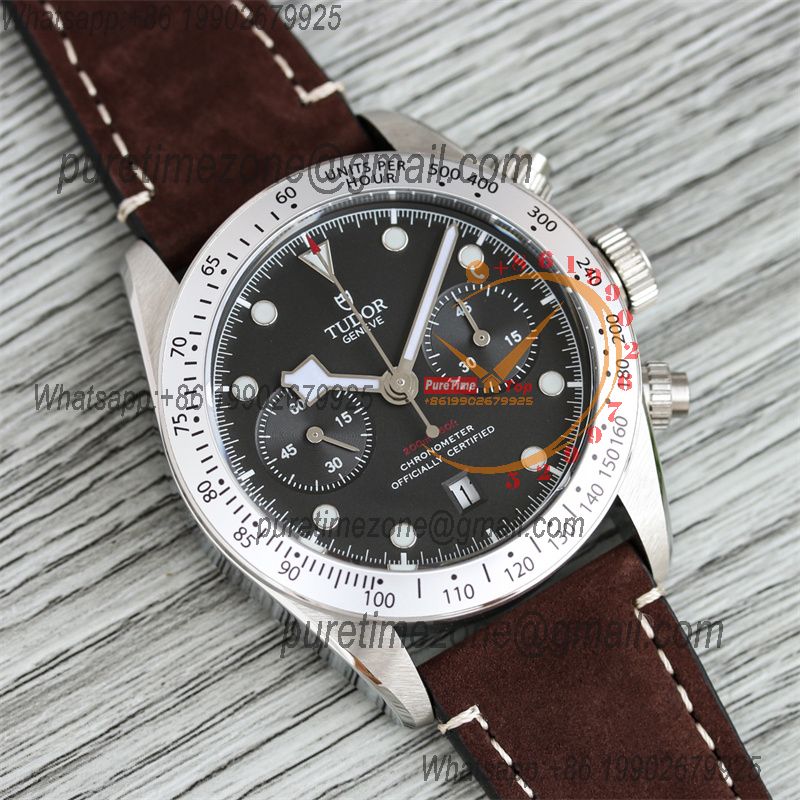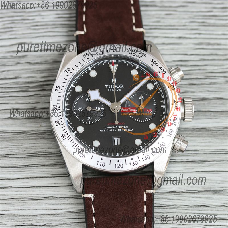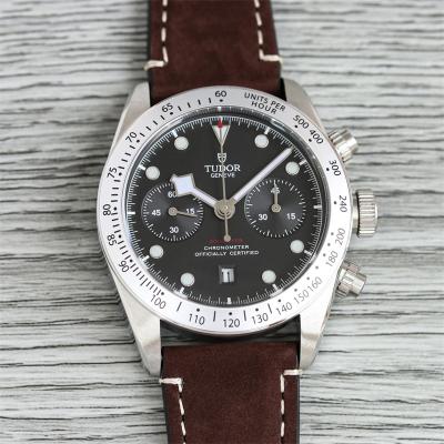 Home Tudor M79350 BLACK BAY CHRONO Automatic Chronograph Mens Watch TWF Steel Case Black Dial Brown Leather Strap Super Clone