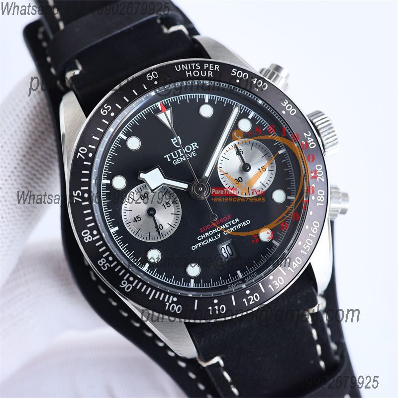 M79360N BLACK BAY CHRONO Automatic Chronograph Mens Watch TWF Black Dial Leather Strap Super Clone