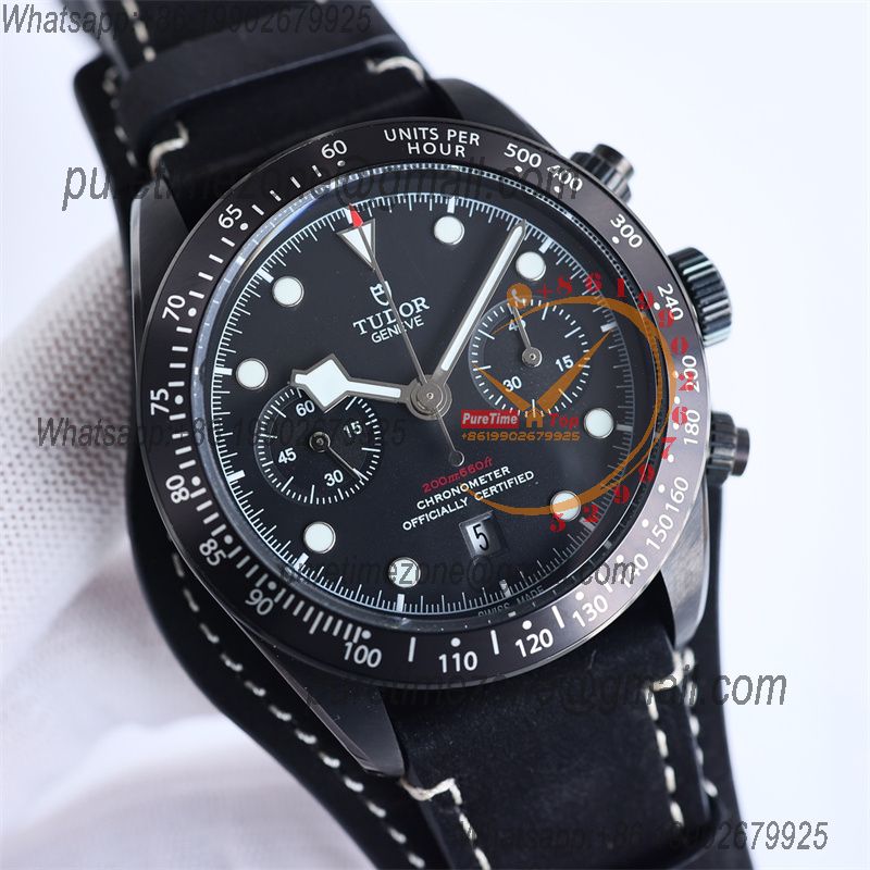 M79360DK BLACK BAY CHRONO Automatic Chronograph Mens Watch TWF All Black Steel Dial Leather Strap Super Clone