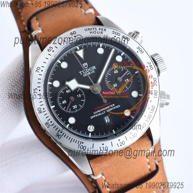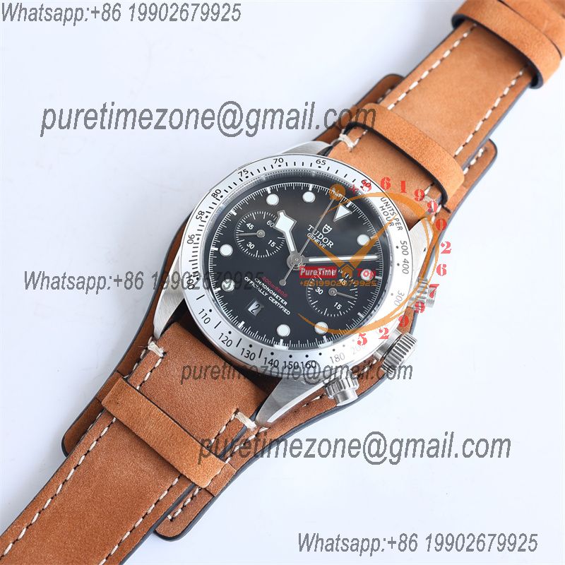 M79350 BLACK BAY CHRONO Automatic Chronograph Mens Watch TWF Steel Case Black Dial Brown Leather Strap Super Clone