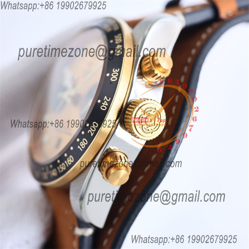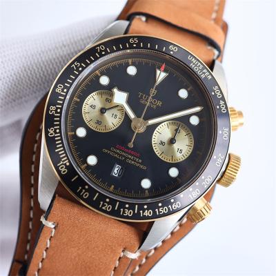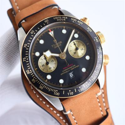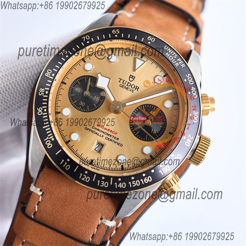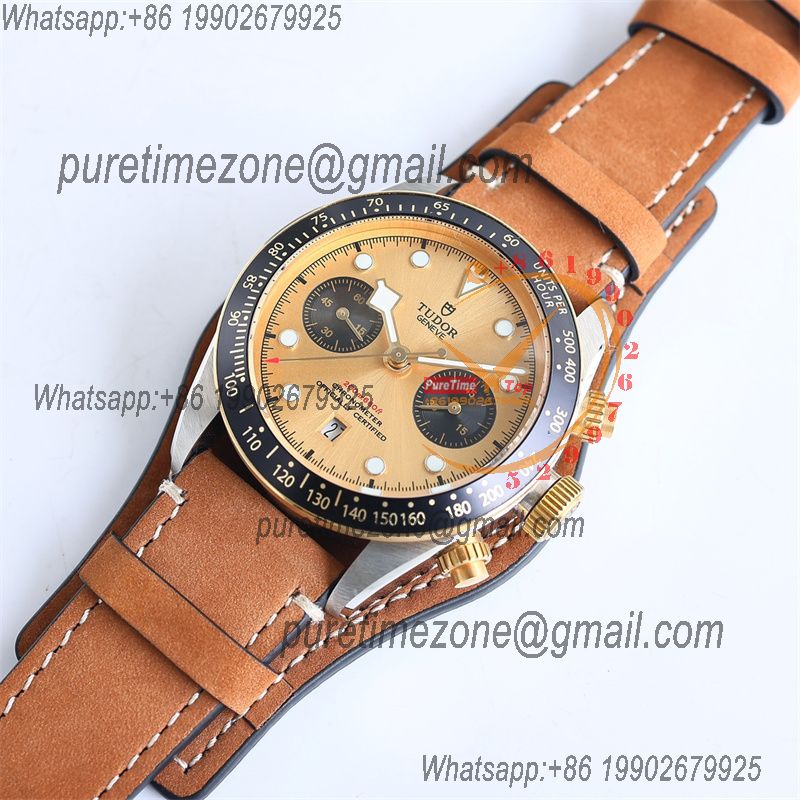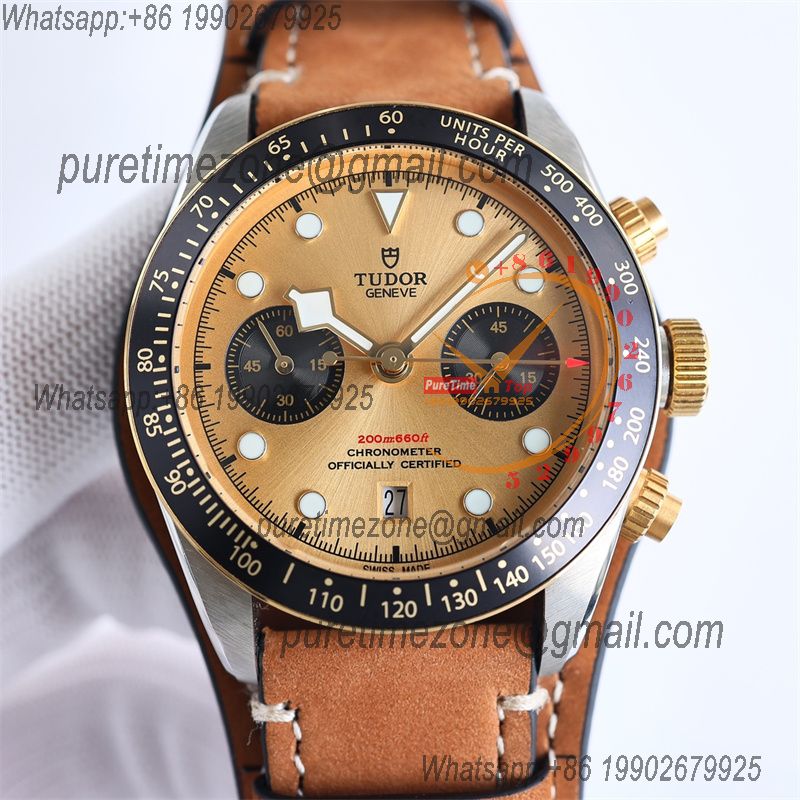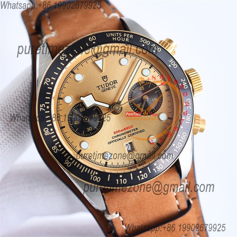 M79363N BLACK BAY CHRONO Automatic Chronograph Mens Watch TWF Two Tone Gold Dial Brown Leather Strap Super Clone
