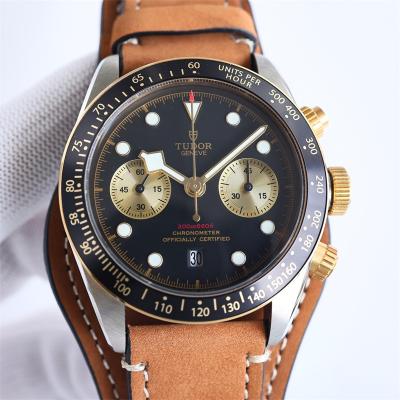 Home Tudor M79363N BLACK BAY CHRONO Automatic Chronograph Mens Watch TWF Two Tone Gold Black Dial Brown Leather Strap Super Clone