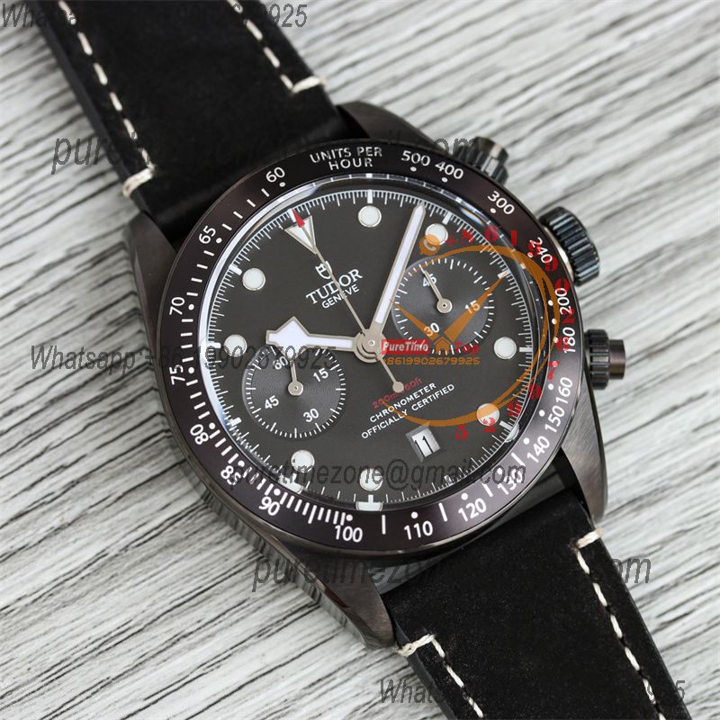 M79360N BLACK BAY CHRONO Automatic Chronograph Mens Watch TWF Black Dial Leather Strap Super Clone