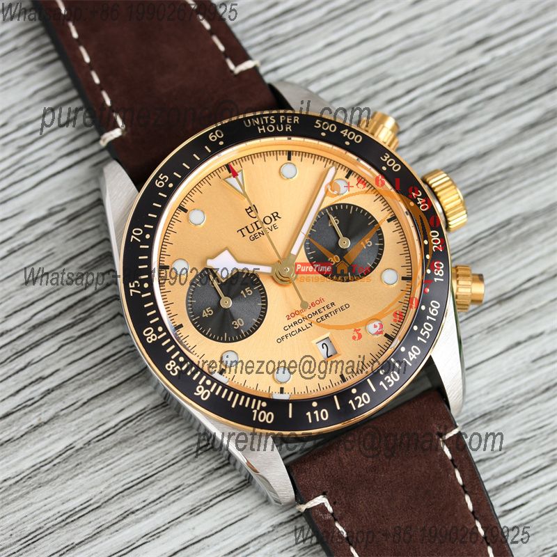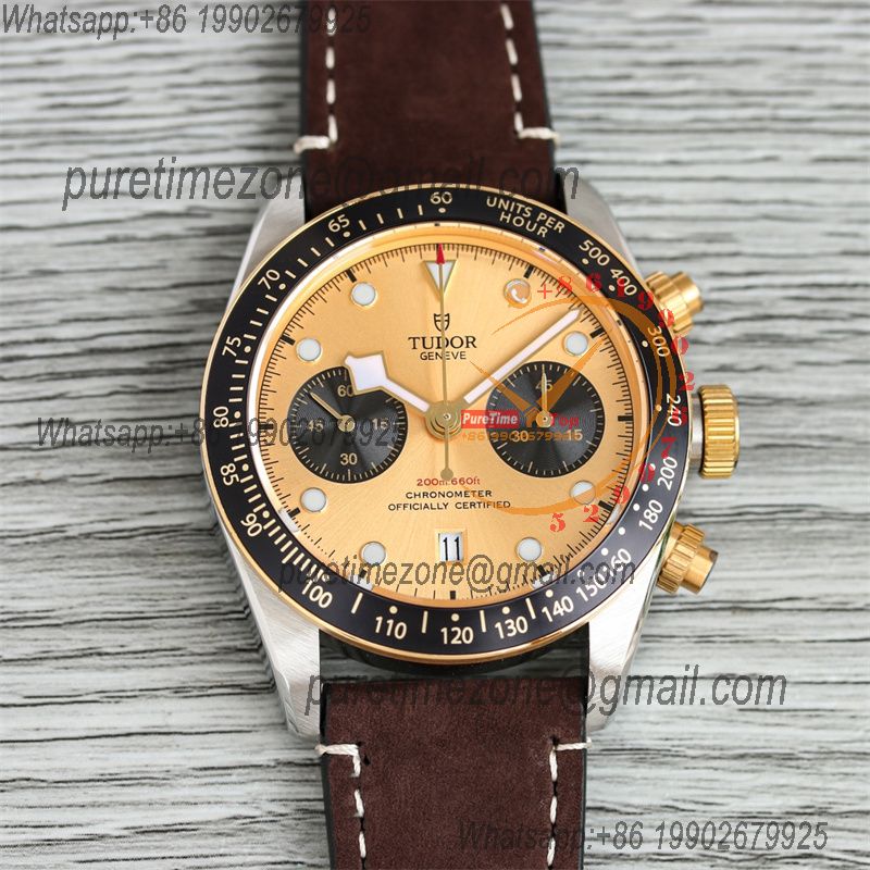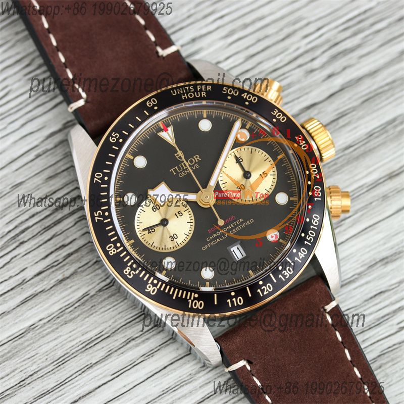 M79363N BLACK BAY CHRONO Automatic Chronograph Mens Watch TWF Two Tone Gold Dial Brown Leather Strap Super Clone