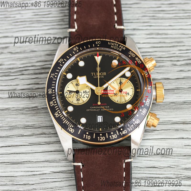 M79363N BLACK BAY CHRONO Automatic Chronograph Mens Watch TWF Two Tone Gold Black Dial Brown Leather Strap Super Clone