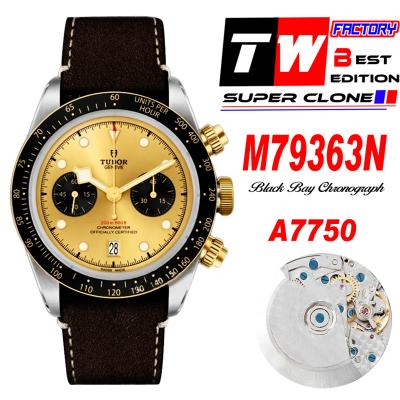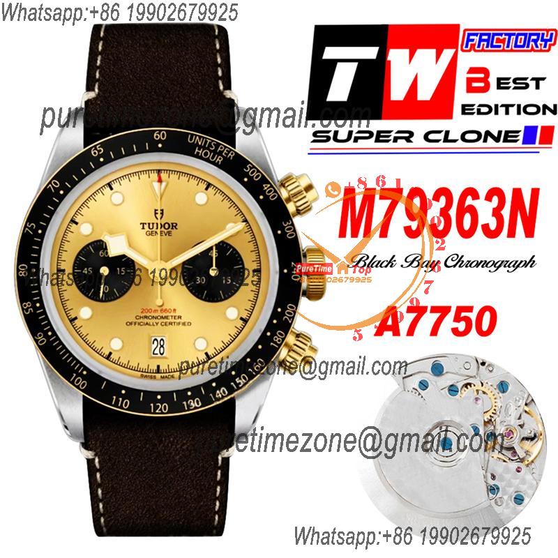 Home Tudor M79363N BLACK BAY CHRONO Automatic Chronograph Mens Watch TWF Two Tone Gold Dial Brown Leather Strap Super Clone