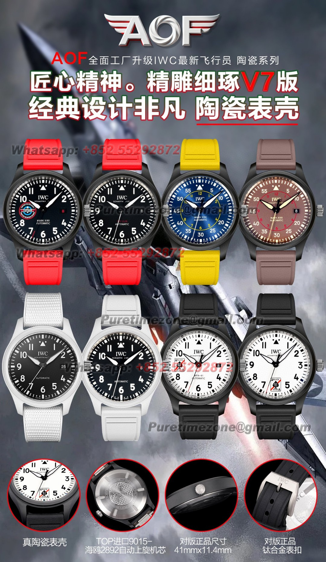 Mark XVIII IW326905 A2892 Miyota 9015 Automatic Mens Watch Super Clone AOF V7 41 Black Aces Ceramic Case White Dial Rubber Super Clone