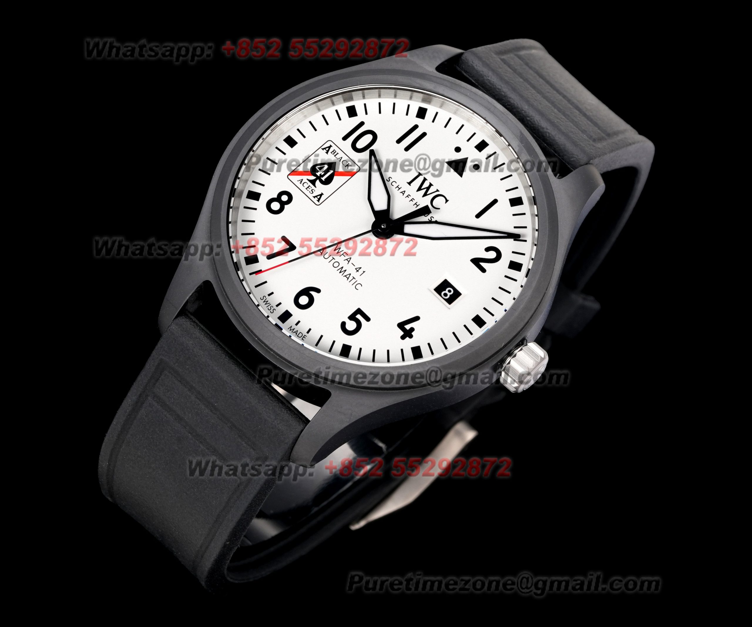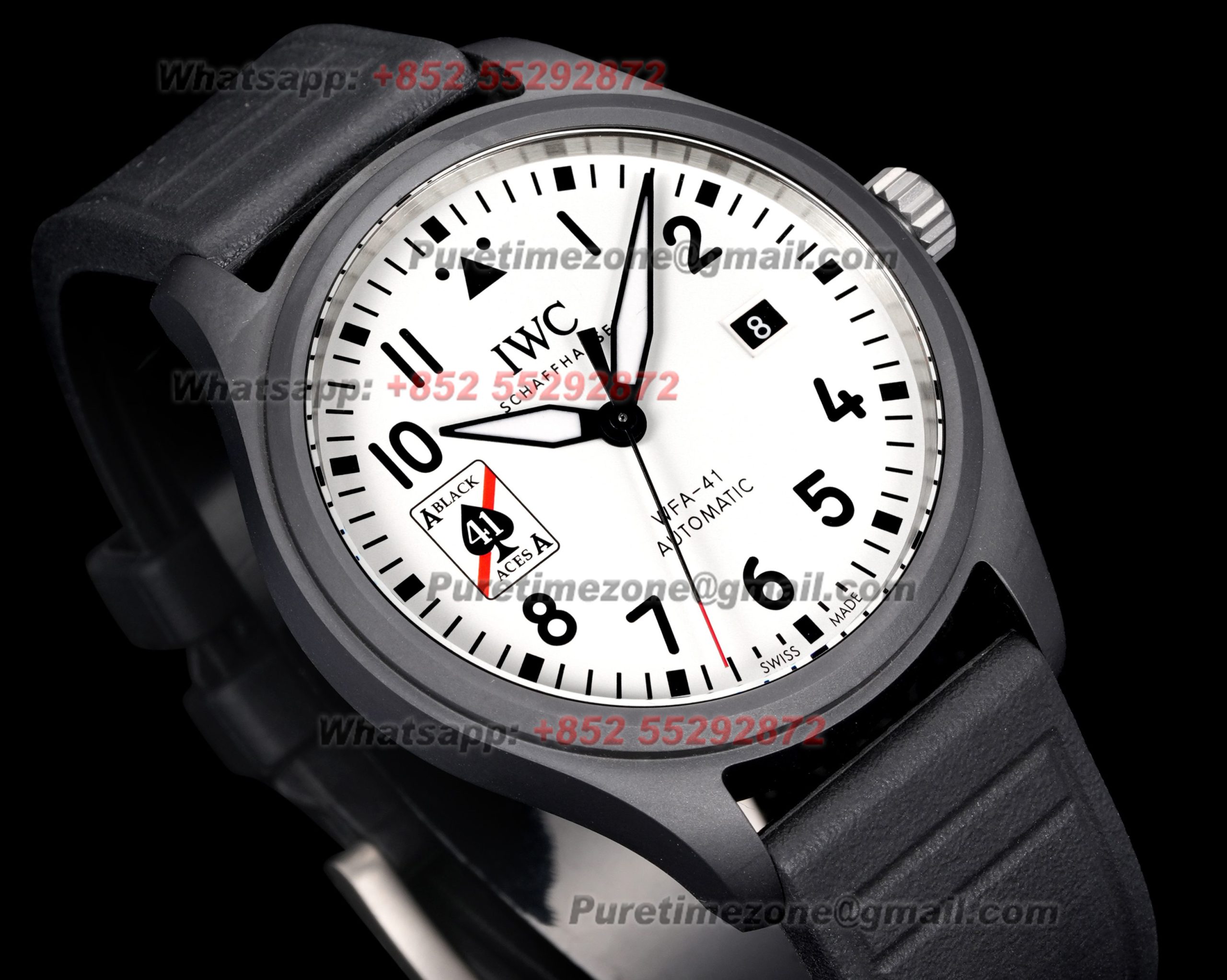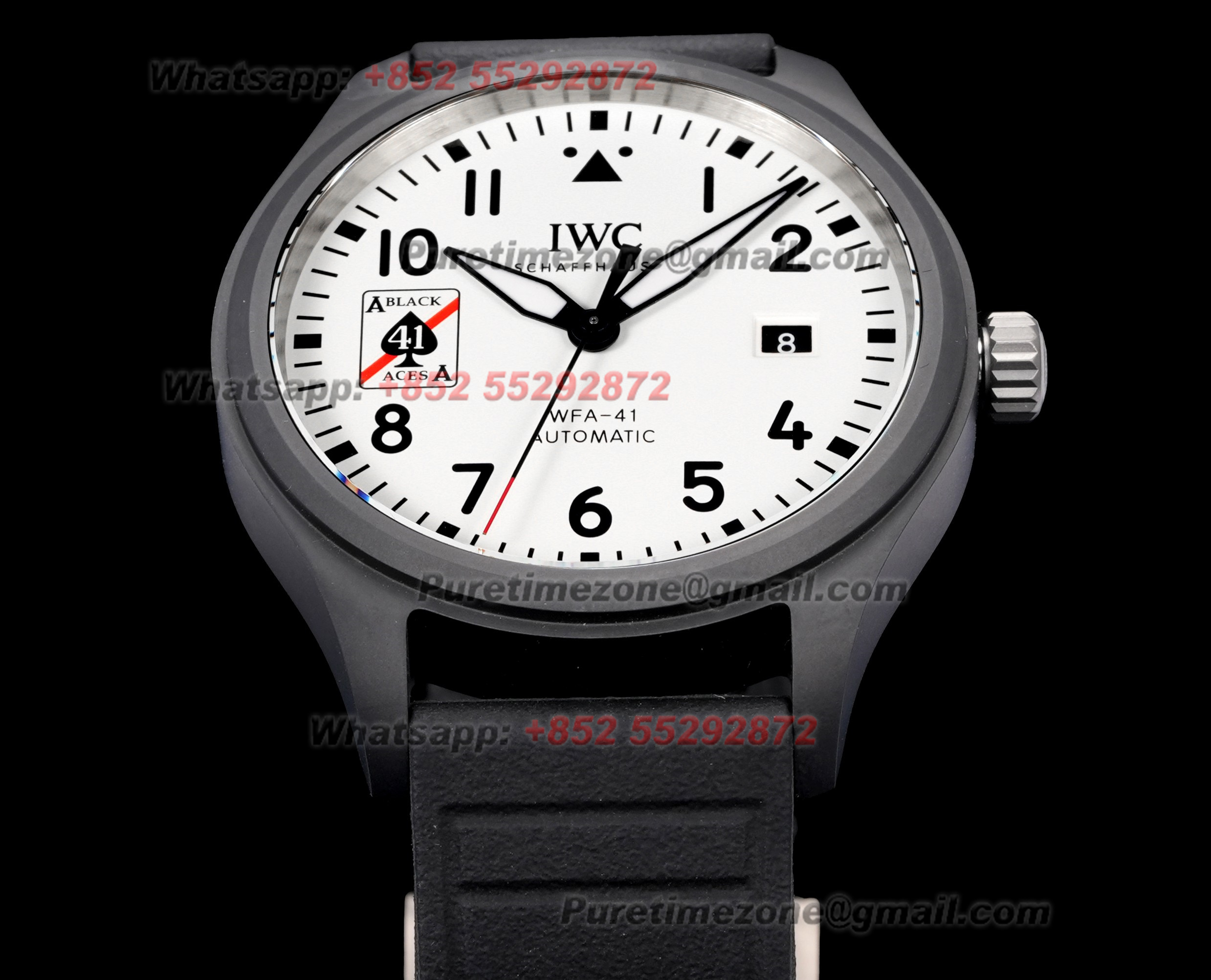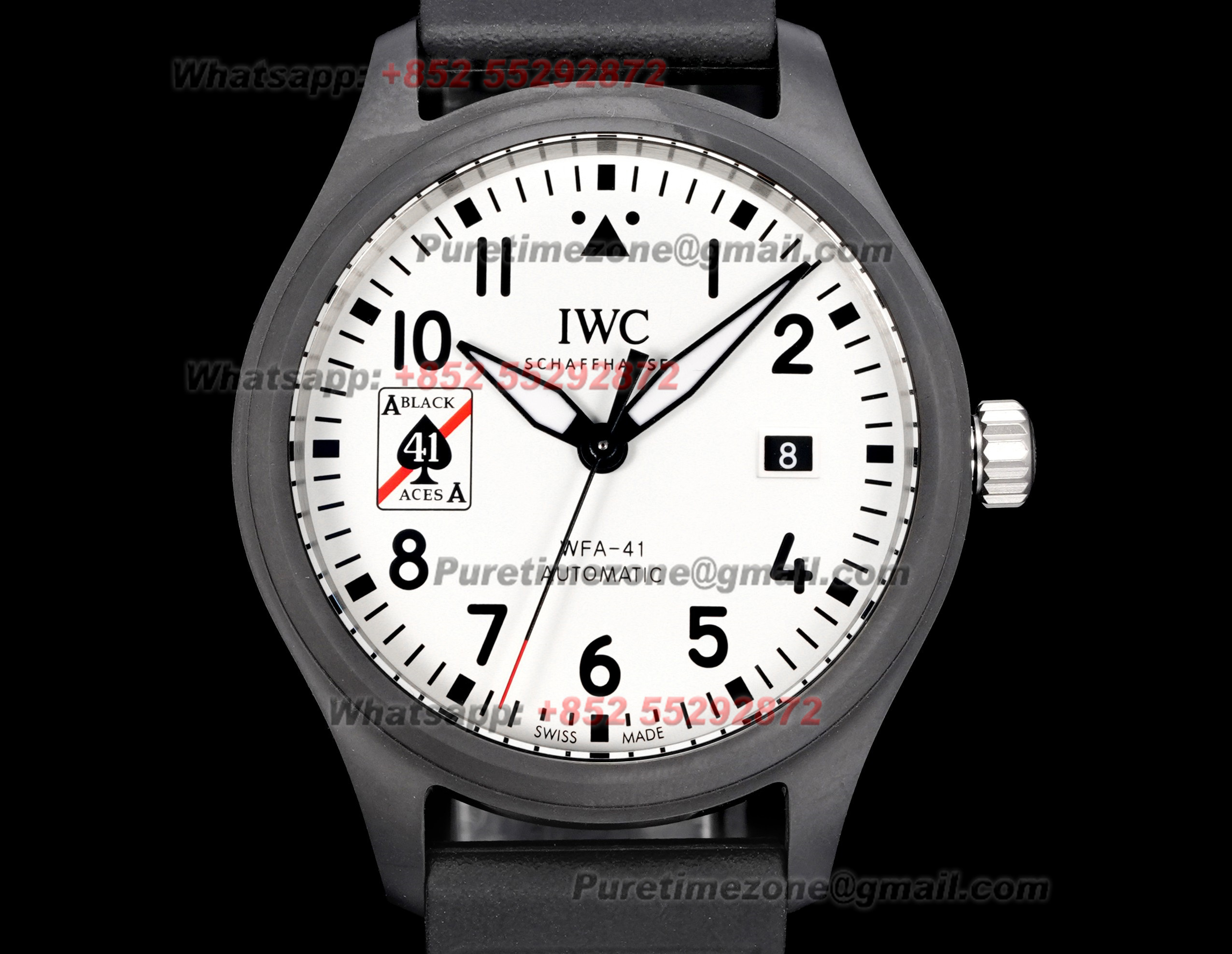 Mark XVIII IW326905 A2892 Miyota 9015 Automatic Mens Watch Super Clone AOF V7 41 Black Aces Ceramic Case White Dial Rubber Super Clone