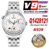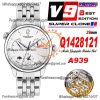 Master Geographic Q1428121 A939 Automatic Mens Watch Best Edition V9F 39mm White Dial SS Bracelet CHS