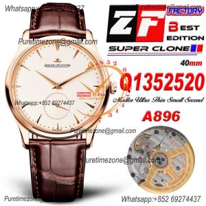 Master Grande Ultra Thin Date Q1288420 A899/1 Automatic Mens Watch Best Edition ZF V3 RG Silver Dial Brown Leather CHS