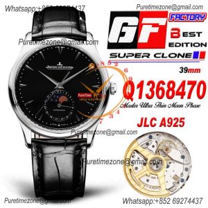 Master Ultra Thin Q1368470 A925 Automatic Mens Watch Moon Phase Date Best Edition GF 39 Steel Black Dial Leather CHS