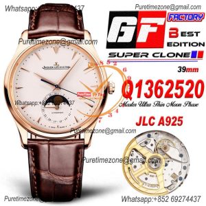 Master Ultra Thin Q1362520 A925 Automatic Mens Watch Moon Phase Date Best Edition GF 39 RG Silver Dial Leather CHS