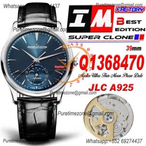 Master Ultra Thin Q1368470 A925 Automatic Mens Watch Moon Phase Date Best Edition IMF 39 Steel Blue Dial Leather CHS
