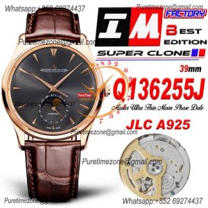 Master Ultra Thin Q136255J A925 Automatic Mens Watch Moon Phase Date Best Edition IMF 39 RG Gray Dial Leather CHS