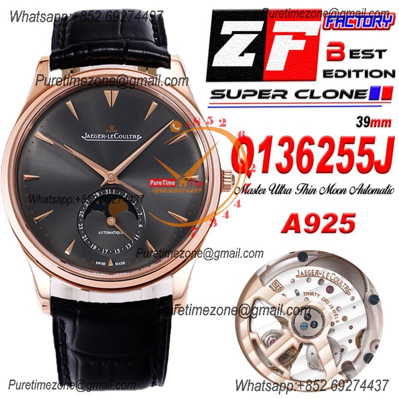 Home Jaeger-LeCoultre Master Ultra Thin Master Ultra Thin Q136255J A925 Automatic Mens Watch Moon Phase Date Best Edition ZF 39 RG Gray Dial Leather CHS