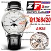 Master Ultra Thin Q1368420 A925 Automatic Mens Watch Moon Phase Date Best Edition ZF 39 Steel Silver Dial Leather CHS