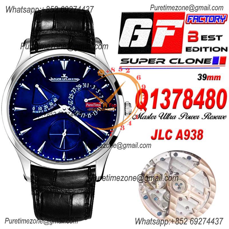Home Jaeger-LeCoultre Master Ultra Thin Master Ultra Thin Q1372520 Reserve Marche A938 Automatic Mens Watch Best Edition GF Power Reserve Steel Blue Dial