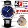 Master Ultra Thin Small Second Q1358480 M9015 Automatic Mens Watch Best Edition ZF 40 Steel Blue Dial Black Leather CHS