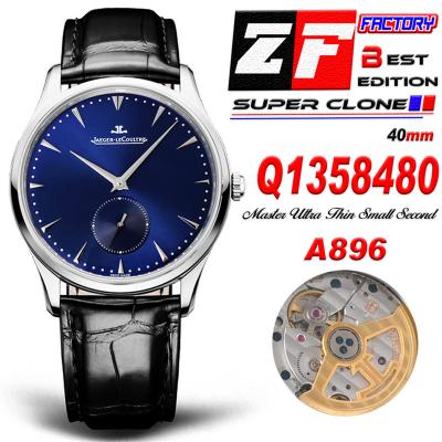 Home Jaeger-LeCoultre Master Ultra Thin Master Ultra Thin Small Second Q1358480 M9015 Automatic Mens Watch Best Edition ZF 40 Steel Blue Dial Black Leather CHS