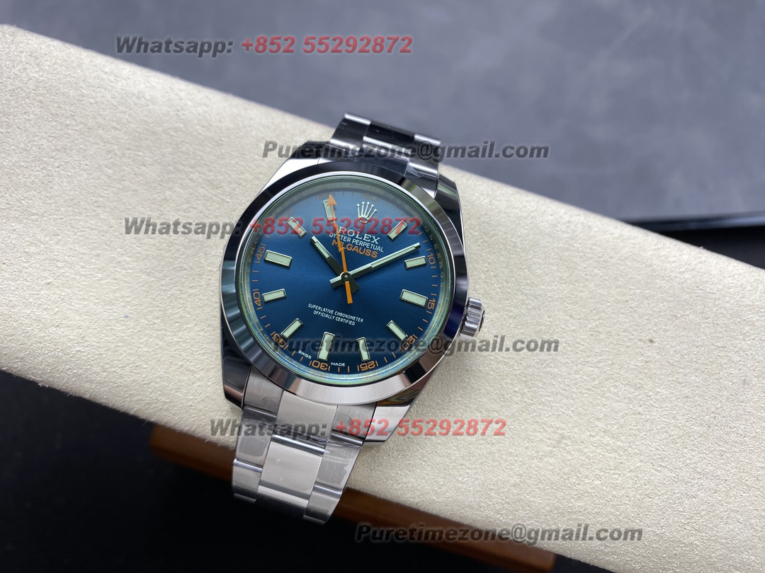 Milgauss 116400GV Automatic Mens Watch Super Clone VSF 40 Z-Blue Dial 904L SS Bracelet VS3131