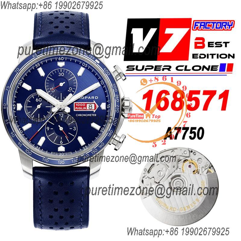Home Chopard Mille Miglia 168571 SS V7F 1:1 Best Edition Blue Dial on Blue Rubber Strap A7750 Automatic Chronograph Mens Watch
