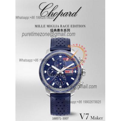 Mille Miglia 168571 SS V7F 1:1 Best Edition Blue Dial on Blue Rubber Strap A7750 Automatic Chronograph Mens Watch