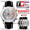 A24322121 Navitimer 1 World GMT A7750 Automatic Chronograph Mens Watch White Dial Black Leather Strap Best Edition