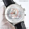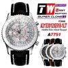 A24322121 Navitimer 1 World GMT A7750 Automatic Chronograph Mens WatchWhite Dial Black Leather Strap Best Edition