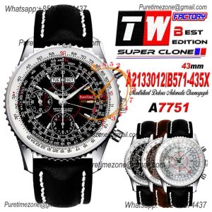 A24322121 Navitimer 1 World GMT A7750 Automatic Chronograph Mens WatchBlack Dial Leather Strap Best Edition