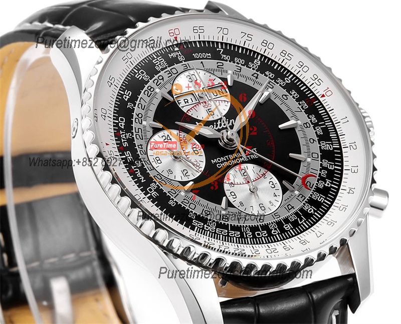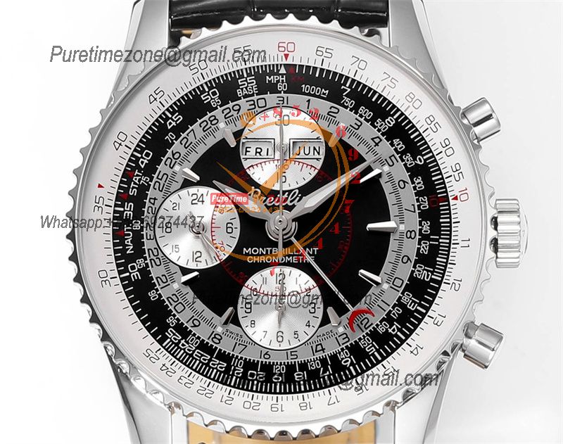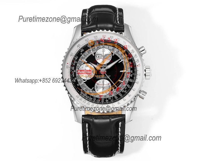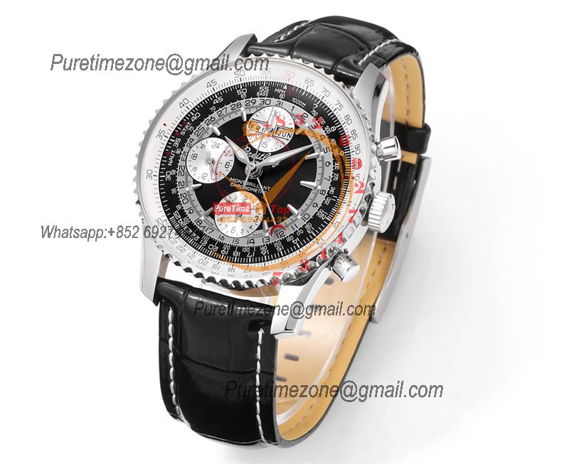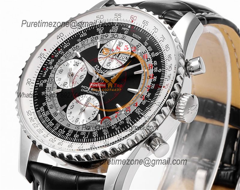 A24322121 Navitimer 1 World GMT A7750 Automatic Chronograph Mens Watch Black Dial Leather Strap Best Edition