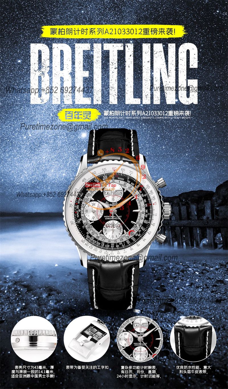 A24322121 Navitimer 1 World GMT A7750 Automatic Chronograph Mens WatchWhite Dial Black Leather Strap Best Edition