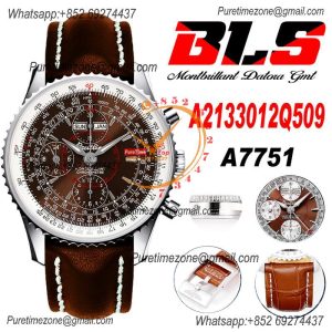 Navitimer B01 AB0137211 A7750 Automatic Chronograph Mens Watch Best Edition BLSF Blue Dial Brown Leather Strap
