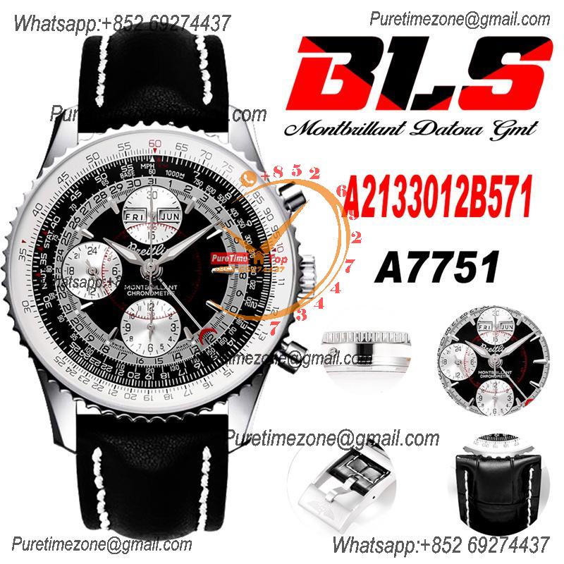 Home Breitling Navitimer Montbrillant Datora GMT A2133012 A7751 Automatic Chronograph Mens Watch Best Edition BLSF Black Silver Dial Leather
