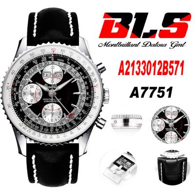 A24322121 Navitimer 1 World GMT A7750 Automatic Chronograph Mens WatchBlack Dial Leather Strap Best Edition