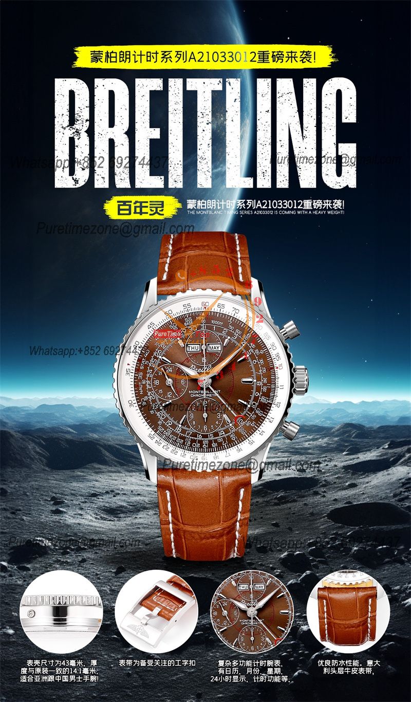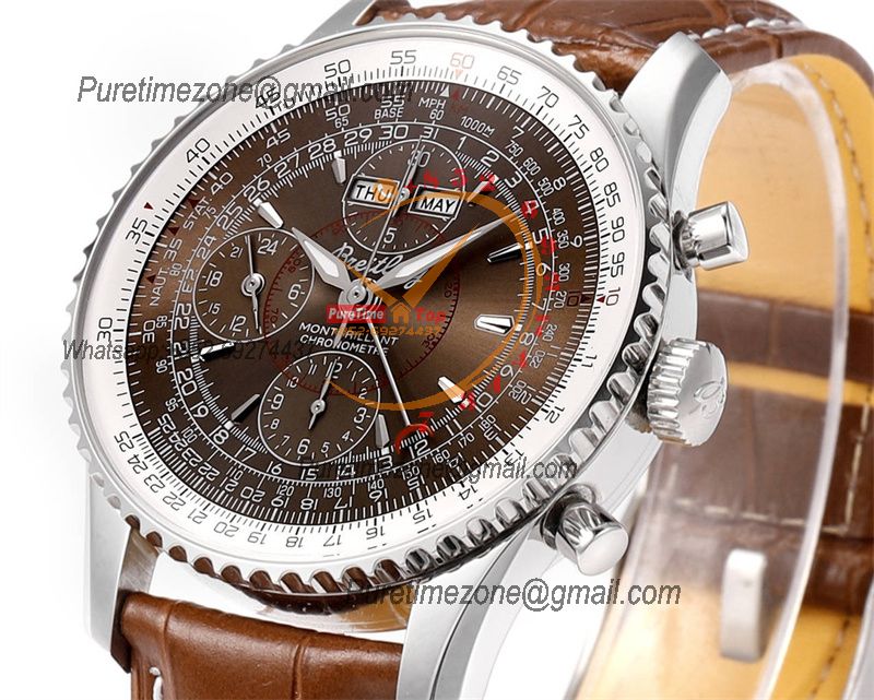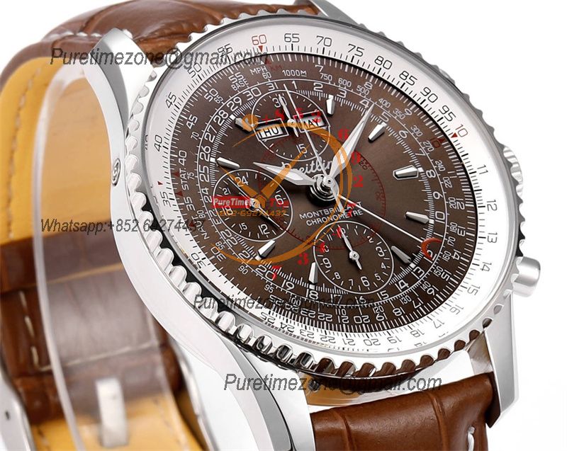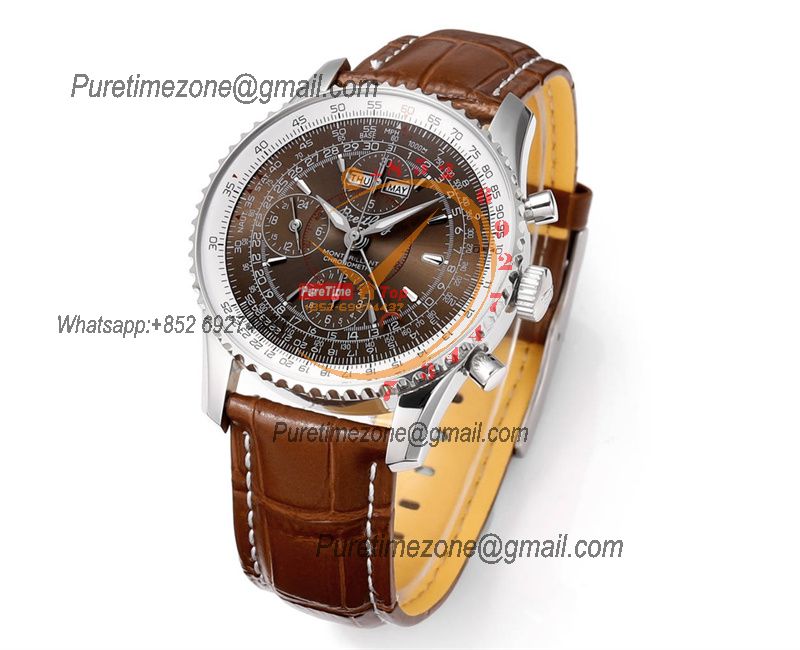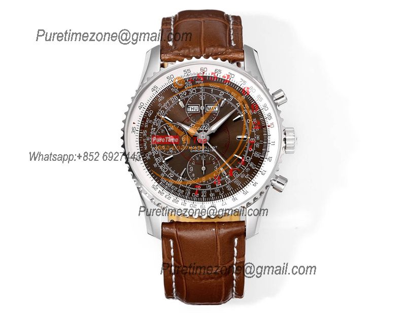 A24322121 Navitimer 1 World GMT A7750 Automatic Chronograph Mens Watch White Dial Brown Leather Strap Best Edition