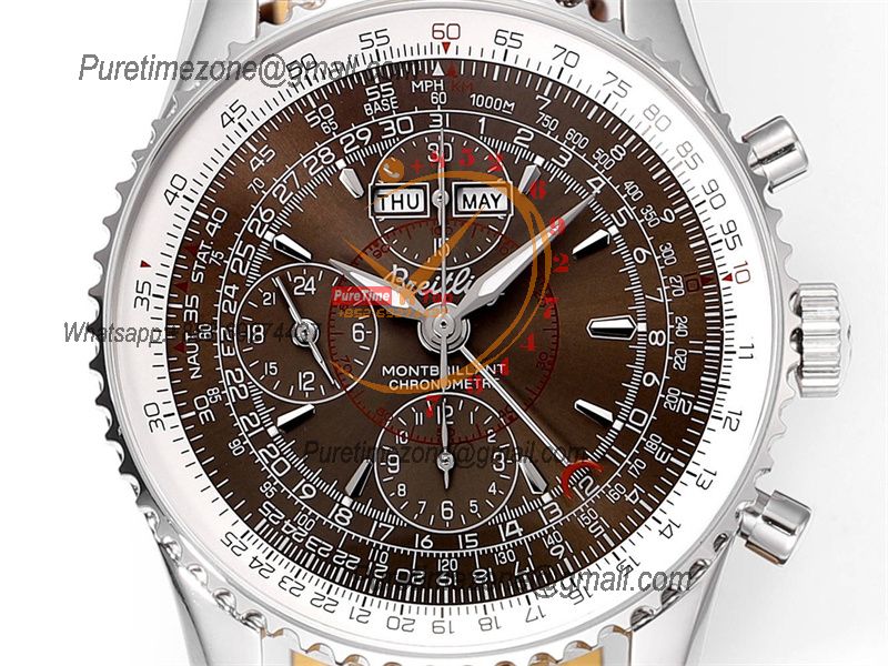 Home Breitling Navitimer Montbrillant Datora GMT A2133012 A7751 Automatic Chronograph Mens Watch Best Edition BLSF Brown Dial Leather Strap