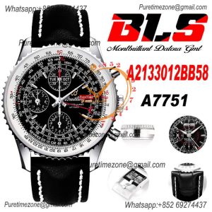 A24322121 Navitimer 1 World GMT A7750 Automatic Chronograph Mens WatchBlack Dial Leather Strap Best Edition