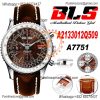 Navitimer B01 AB0139211 A7750 Automatic Chronograph Mens Watch Best Edition BLSF Silver Dial Brown Leather Strap