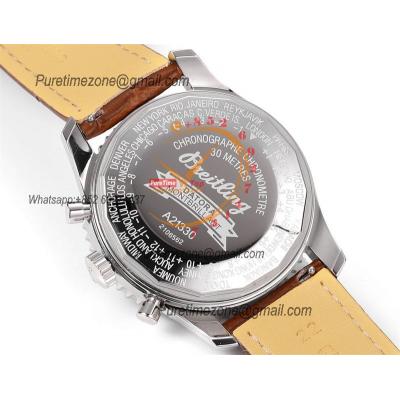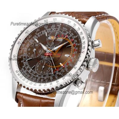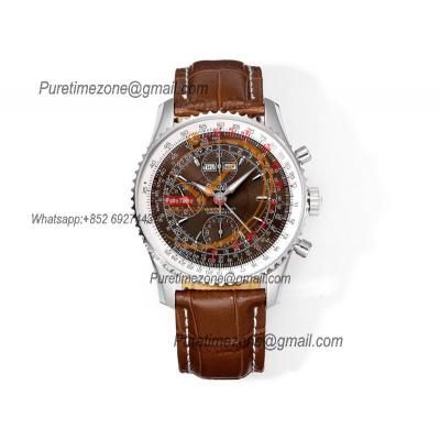 A24322121 Navitimer 1 World GMT A7750 Automatic Chronograph Mens WatchWhite Dial Brown Leather Strap Best Edition