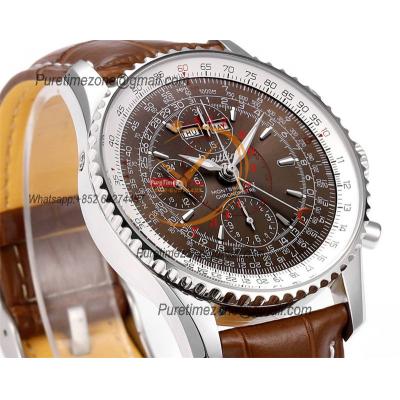 Home Breitling Navitimer Montbrillant Datora GMT A2133012 A7751 Automatic Chronograph Mens Watch Best Edition BLSF Brown Dial Leather Strap