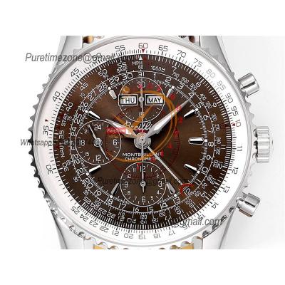 Montbrillant Datora GMT A2133012 A7751 Automatic Chronograph Mens Watch Best Edition BLSF Brown Dial Leather Strap